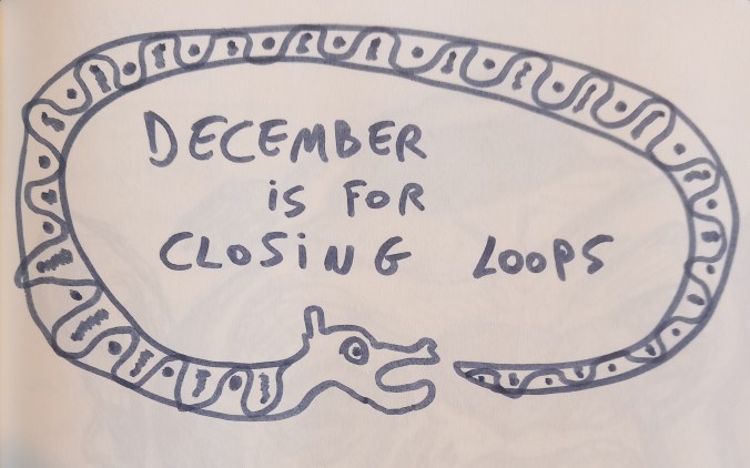Dit is geenszins een nieuw fenomeen voor mij, maar het neemt wel jaar na jaar toe. Het zal dus een klus worden om meer lussen te sluiten en minder nieuwe lussen te openen. Ik probeer een serieel monogaam schrijver te zijn. Dat valt me voorlopig niet mee. Ik hoop daar beter in te worden door er bewuster aan te werken in 2026.